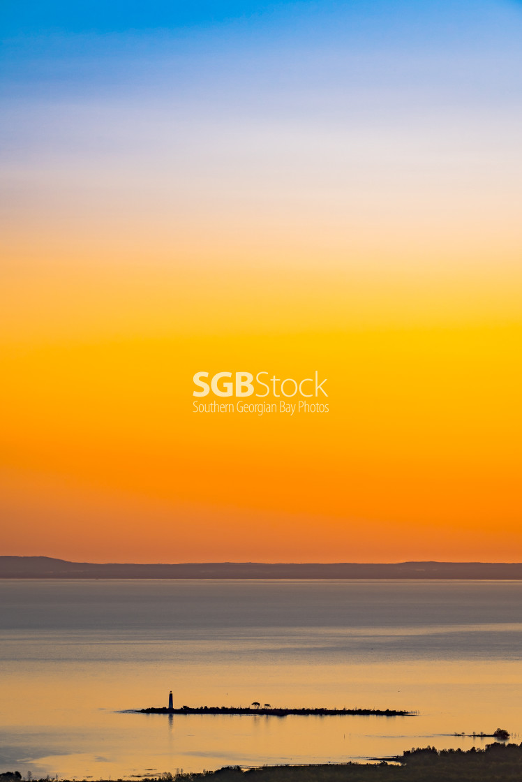 The sun rising over Nottawasaga Island as seen from the top of Blue Mountain.