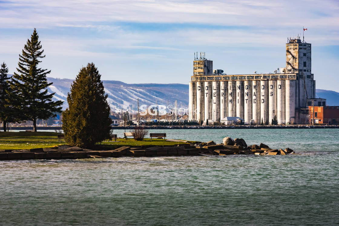 The view to the terminals building from Sunset Point Park in Collingwood, Ontario.